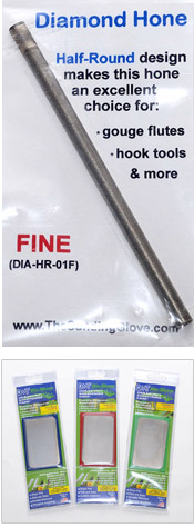 DMT Diamond HonesDiamond hones can help you easily maintain a fine edge on your turning tools without constantly returning to the grinder. The credit card style hones are easy to hold and have a large surface area for long life. Our half-round hone is excellent for gouge flutes, beading tools, hook tools, etc. Some of our customers turn a small wood handle making it easier to hold. DMT has been the leader in diamond sharpening technology for over 30 years. |